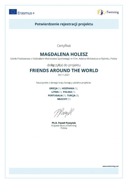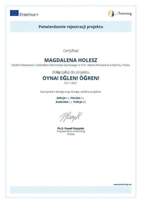 Udział w projektach eTwinning to dla naszych uczniów wyjątkowa okazja do nauki poprzez działanie, rozwijania kompetencji językowych oraz nawiązywania kontaktów z rówieśnikami z innych krajów. To także inspirująca przestrzeń do wymiany doświadczeń i wdrażania innowacyjnych metod pracy.